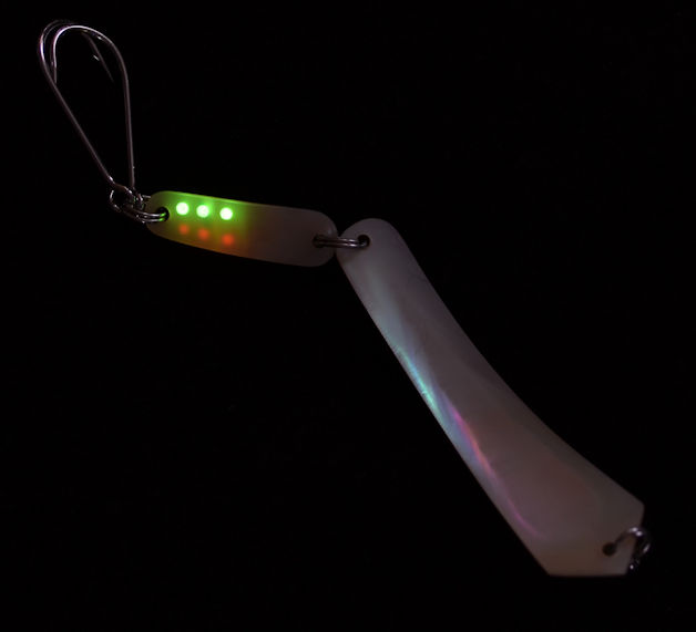 このようなルアーでも、ドジャーの引き回しによるストップ&ゴーで、