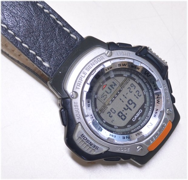 方位、高度、気圧、温度のトリプルセンサーに、目覚ましアラームが付いたこのプロトレック。