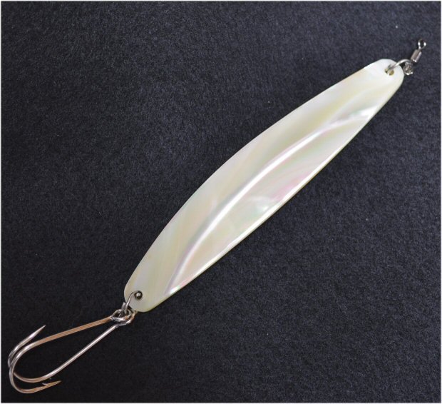 夜光貝キビナゴ筋S字、濁りにも強く、最も良く釣れるシェルスプーンの1つです。