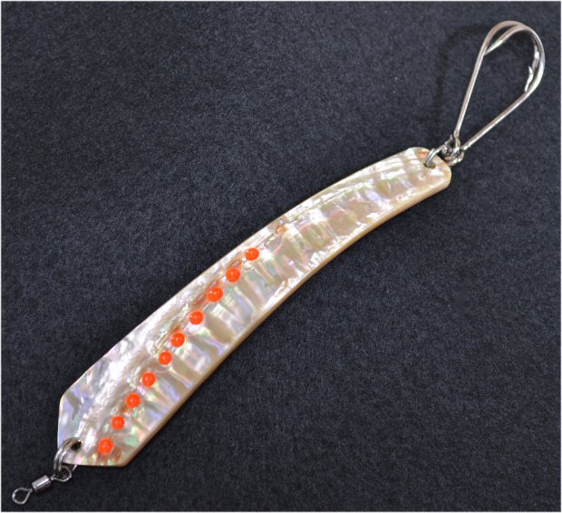 I'zShellCraftドルフィン日本アワビ超トラ目タトゥーUV蛍光オレンジ102㎜