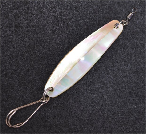 (FAQ615) 日本アワビ耳部本耳Hybrid夜光貝 日本アワビ耳部本耳と夜光貝トラ目とを合わせたHybridです。 特に日本アワビ耳部本耳のぎらつきには凄いものがあります。 角度により、日本アワビ耳部本耳が光ったり夜光貝のトラ目が光ったりします。 どちらも縦取りなので、真正面に光ります。 接合や厚み管理も最適で、精妙なウォブリングを実現しています。 とても手がかかった非常に美しいシェルスプーンです。