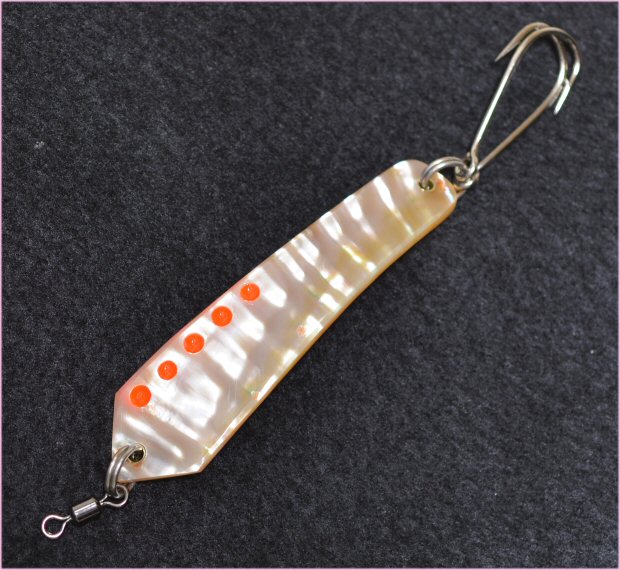 (FAQ664) ぶち切られて 解禁を迎え、早速景気の良いお便りをいただきました。 関東圏の湖で、ドルフィン日本アワビのタトゥー蛍光赤を かなりの大物に持っていかれたそうです。 ドルフィン日本アワビは、超ど派手なウォブリングをする シェルスプーンで、タトゥーの蛍光赤系との相性は抜群です。 早速、代わりのドルフィン日本アワビをお買い上げいただきました。
